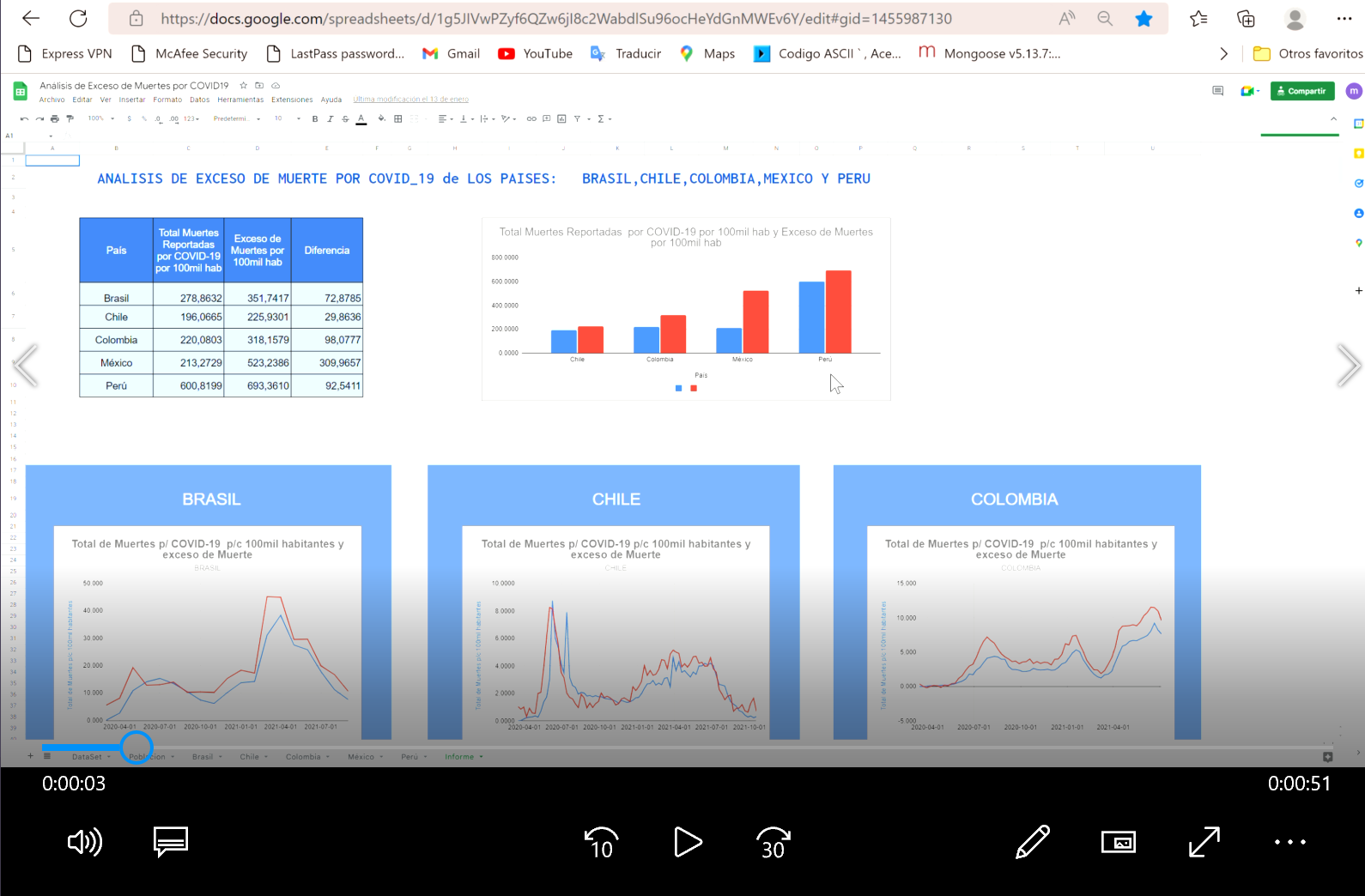 - Chile es el país con los datos oficiales más parecidos a los datos reales.